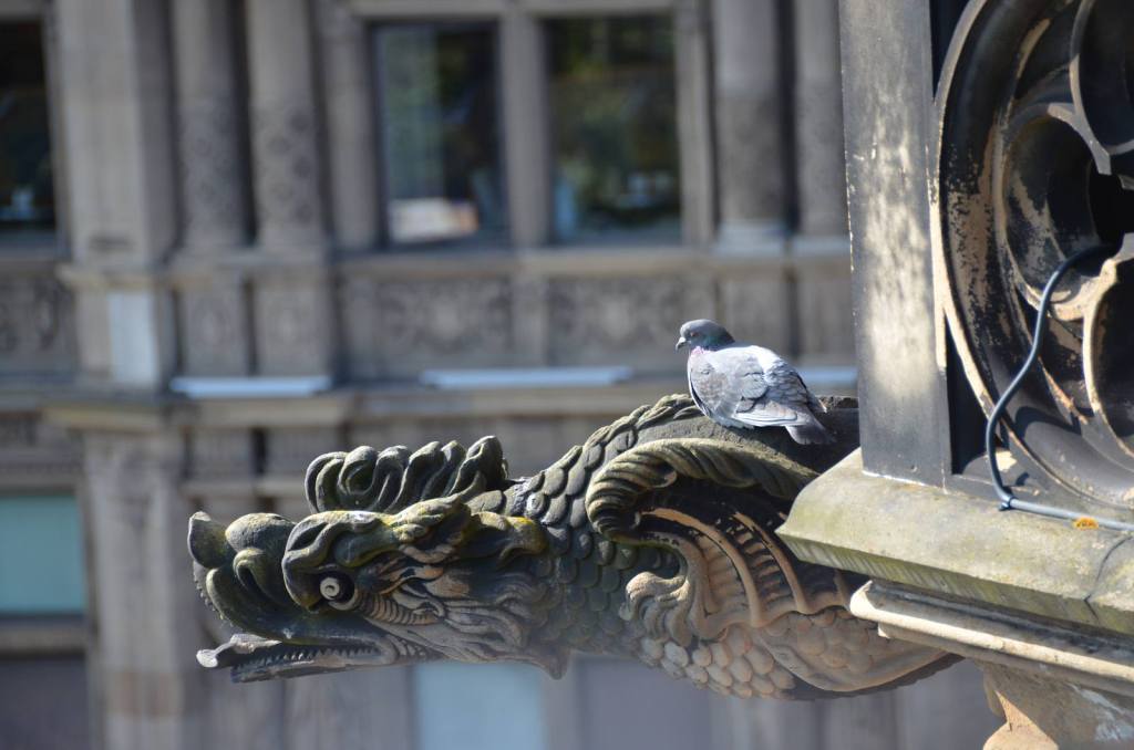 Walter perched on the street lamp above him and called down.